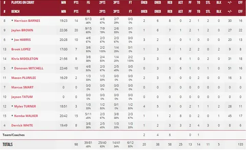 3. Todos suman ante las dos bajas. La unión hace la fuerza y EEUU lo sabe bien. Todos los jugadores que disputaron algún minuto anotaron al menos una canasta, y todos los exteriores se fueron por encima de los 8 puntos, con Jaylen Brown como protagonista y como espectáculo (20 puntos, 7 asistencias). Ante Japón dio un golpe sobre la mesa, sin Tatum y sin Smart, que podría haber sido mayor si en los últimos minutos hubieran mantenido el acierto en ataque.