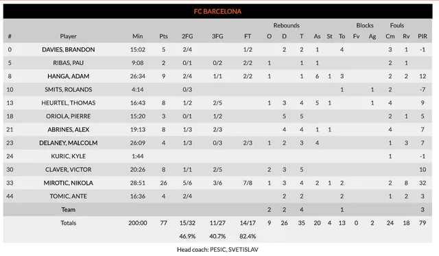 Pesic, visiblemente molesto con el juego de los suyos abroncó a Kuric por no presionar a Colom y a los dos minutos lo volvió a sentar para dar entrada a Hanga. Además empezó a recriminar a los árbitros varias decisiones.