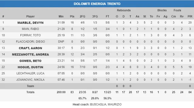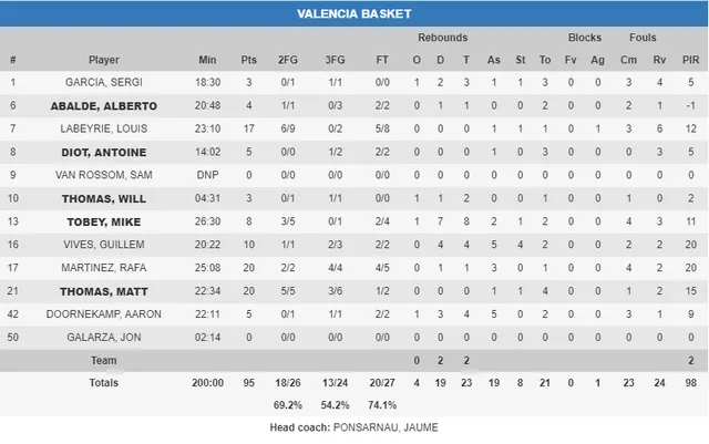 Tuvo sus minutos Ion Galarza en el tercer cuarto y parte del último, en el que apenas jugaron Will Thomas y Sam Van Rossom. Trento perdía sus oportunidades conforme pasaban los minutos, y Valencia no le dio opción a acercarse, con lo que cerró el encuentro a menos de dos para el final (83-95).