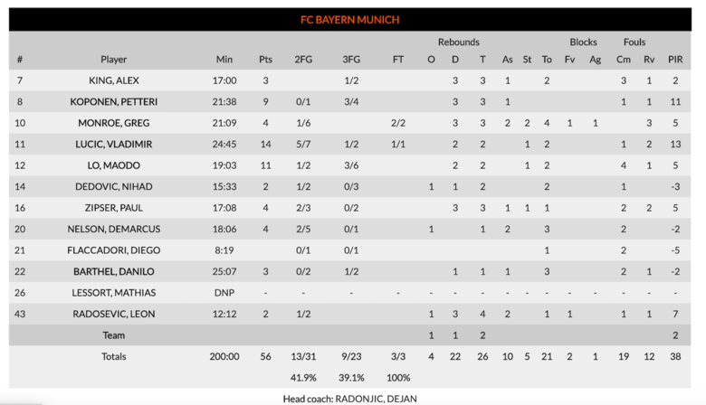 Defensa interior: Valencia ha conseguido frenar uno de los prinicipales argumentos sobre los que se generan ventajas en el ataque alemán. El Bayern busca a sus hombres altos, en especial Monroe, para finalizar pero sobretodo para generar espacios para los Dedovic, Koponen y compañía. Sin embargo hoy se ha realizado una gran labor en la defensa del uno contra uno en el poste bajo. Obligando a recibir muy lejos del aro y a colgar balones que se traducían en pérdidas. Llama la atención que Ponsarnau ha prescindido de un hombre que venía siendo importante en sus esquemas como Ndour, pues dicha defensa es mérito de Dubljevic y Labeyrie y en menor medida de Tobey y Motum.