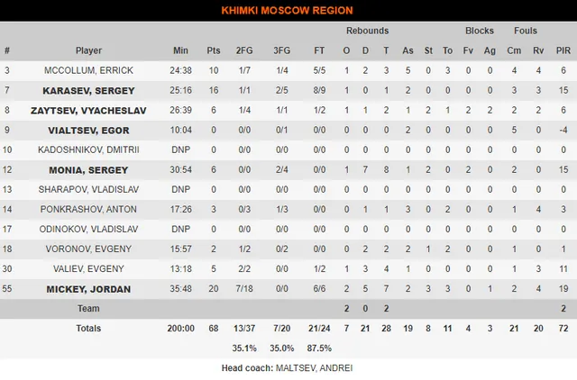 Valencia Basket no tuvo su mejor partido en Euroliga, pero lo ejecutó de manera idónea para llevarse la victoria en el feudo de Khimki. El mejor primer cuarto les dió una ligera ventaja que les mantendría por delante durante todo el encuentro y que les daría sensación de controlarlo. Esto, a pesar de que los locales mejoraron y estuvieron cerca del marcador de su rival. La dupla formada por Derrick Williams y Nikola Kalinic fueron los líderes de juego en el partido en la que se notaba la baja de Bojan Dubljevic y en el que no se encontró Sam Van Rossom, que dio el susto al retirarse con dolores en el tobillo. Klemen Prepelic y Mike Tobey fueron claves también en el encuentro en algunos momentos del partido. En el lado estadístico, los valencianos lideraron en la efectividad en el tiro ofensivo y en el rebote defensivo.