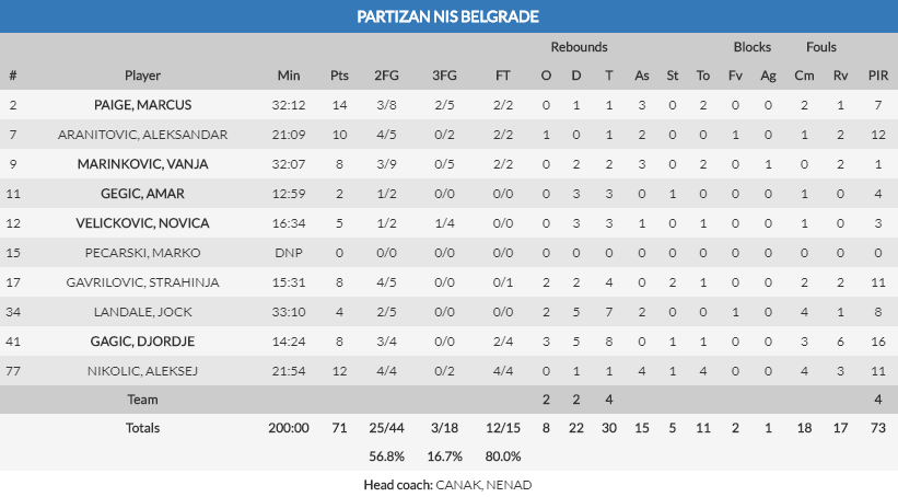 - Tiro exterior. En muchos momentos del encuentro hubo igualdad y se podría decir que técnicamente la hubo, solo se ha diferenciado en pequeños detalles, y uno de esos ha sido el porcentaje en el triple. Un 39 % para los taronja ante el flojo 12 % de Partizán, que se hizo más fuerte en el juego interior. Pero no solo es importante el porcentaje, sino que se podría decir que de lo poco que se tiró desde la línea de tres, fueron tiros que sentenciaron un buen momento o ayudaron a poner ventaja, con lo que adquirió una mayor importancia.