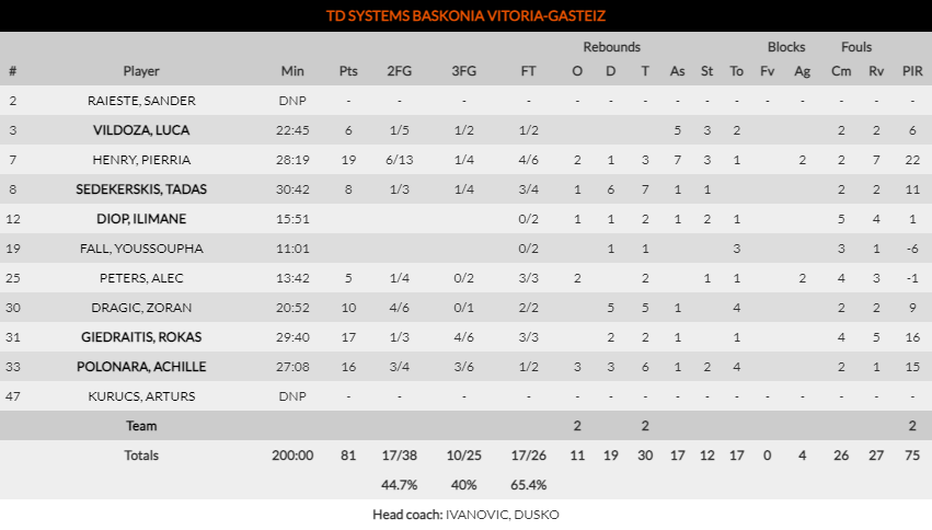 La cruz del partido de hoy se la lleva Baskonia. Los de Ivanovic no hicieron mal encuentro, de hecho tuvieron opciones de ganar hasta el final y fueron capaces de recuperarse de los momentos de desconexión. A pesar de que era duda, Pierria Henry fue de la partida e incluso fue el máximo anotador con 19 puntos. Con él aparecieron también los que llevan siendo los más destacados de la temporada como son Giedraitis, Polonara y Dragic, con los que fue superior en el tiro exterior. Con esta derrota acaban su participación en Euroliga, pero lo han hecho con opciones de playoffs hasta el final.