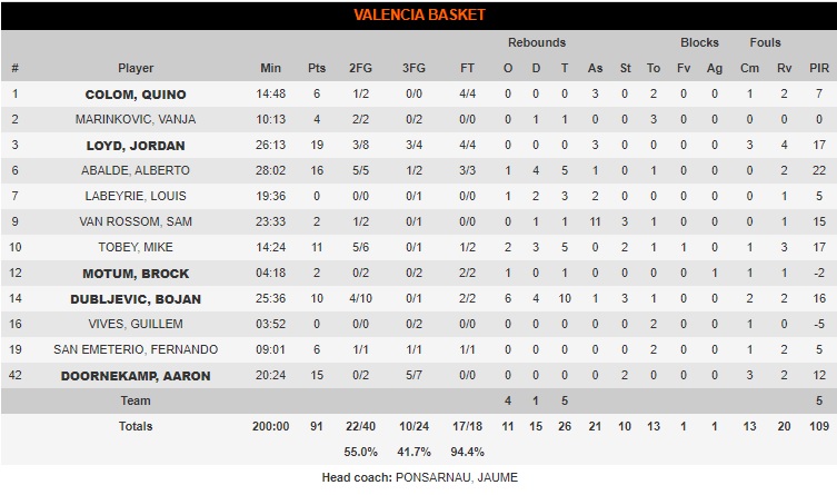 Con la victoria a punto de caramelo, la zona de Aíto frenó en seco el ritmo de juego; el acierto desde la larga distancia completó la reacción visitante (72-69). Insuficiente para el momento Aaron Doornekamp. De nuevo desde el 6.75, esta vez por partida doble, esta vez para derribar la última barrera de García Reneses (82-71 min. 37). Octavo triunfo al zurrón (91-77), sexto consecutivo en la Fonteta. El sueño del Play Off sigue vigente. Así sí. Cuanto ha llovido desde aquel 0-6 inicial.