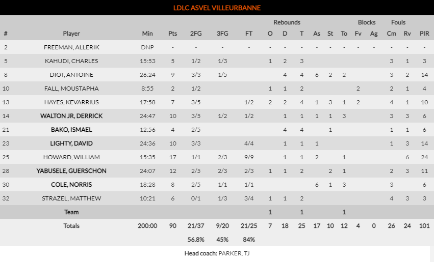 Los 17 puntos del jugador de ASVEL Villeurbanne le valieron para ser el más valorado del encuentro. No es para menos, pues Howard tuvo una carta de tiro casi perfecta, sin fallar ningún tiro de dos ni tiro libre y solo con un fallo en el triple, de tres lanzados. Le acompañaron Guerschon Yabusele, quien fue el mejor de la primera parte y que acabaría con 12 puntos, y David Lighty, quien no falló ningún tiro de los que lanzó y se quedó en 10 puntos.