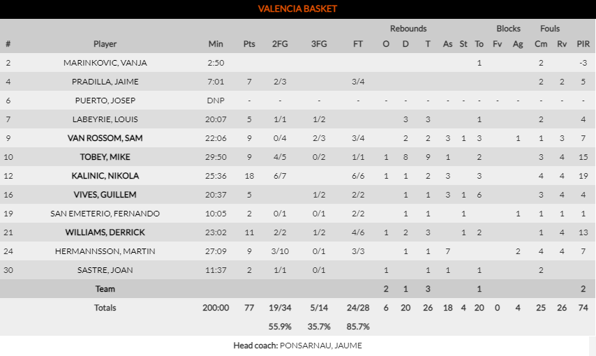 Muchos jugadores se siguen echando en falta en Valencia Basket. Uno de ellos está claro que es Bojan Dubljevic, que continúa siendo baja. El equipo lleva varios partidos en los que solo Nicola Kalinic y Derrick Williams son los que mantienen al equipo, con ayuda de los bases. Más allá de eso, falta aportación ofensiva de más jugadores para que no toda la carga caiga en uno o dos jugadores, que acaban agotados. En ASVEL hoy tuvieron todo lo contrario. Tuvieron siete jugadores por encima de los cinco puntos, y fue una de las claves desde el principio, que el juego fue más colectivo.