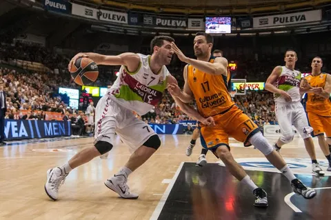 Luke Harangody (23 puntos) y Sam Van Rossom (14 puntos, 9 asistencias) fueron los mejores del partido para Valencia Basket, pero la aportación de Pau Ribas (11 puntos) y de Bojan Dubljevic (13 puntos) fueron fundamentales. En Baskonia echaron de menos a Sasha Vujacic (7 puntos) y pagaron el bajón de Heurtel (5 puntos en la segunda parte). Solo Shengelia se salvó (20 puntos).