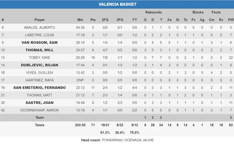 Partido de vuelta: Al Valencia Basket con 11 puntos de ventaja en el primer encuentro de ida, le sobró todo el último cuarto para terminar de eliminar a su rival, que fue poco a poco viendo, a medida que terminaba el partido, lo difícil que era anotar y defender frente a sus pares, sin ninguna opción tras un parcial de 9-24 en el tercer cuarto.
