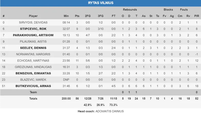 Mike Tobey fue uno de los artifices de la primera ventaja de su equipo, anotando 9 puntos práctimaente seguidos y estando intenso en defensa, abriendo una brecha de 9 puntos en el marcador. Tras el tiempo muerto de Abromaitis con 19-28, Rytas comenzaba a mover con mucha fluidez el balón y un triple de Bendzius, con 8 puntos, ponían a los de Vilnius directos a por el partido, animando a todos los de su equipo y afición a que ellos también lo hiciesen. Y así fue, de un momento para otro los lituanos se vinieron arriba a medida que los valencianos encadenaban 2 pérdidas y varios errores desde el tiro, con Arnas Butkevicius como protagonista por parte de los locales, con 4 puntos y 5 asistencias. El lituano junto a Rok Stipcevic, autor de 3 triples, impusieron el ritmo que ellos quisieron en el partido y llevaron en volandas a su público, mientras ellos seguían con un cántico muy parecido al “¡Sí se puede!”. (39-33)