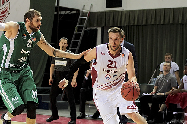 El ex NBA (22 puntos con un 8/11 en tiros de campo) se encargó de activar la maquinaria para impulsar a los locales en su primer encuentro de playoff, cerrando un primer parcial más que favorable como primer cuarto (26-12). Krasnye Krylia subió filas, pero la pintura ya había sido tomada por la pareja Vougioukas-Kurbanov, con doble-doble de este último tras sus 11 puntos y 10 capturas, y, dueños del rebote (41, con 16 en ataque, por los 23 del Krylia) y mejores por dentro, los de Trinchieri estuvieron cerca de doblar a su rival en el marcador al descanso (48-29). Ignerski (22 puntos) ya había venido cargando con buena parte de la responsabilidad visitante y volvió a ofrecerse como héroe del tercer cuarto, pero no cesó el dominio de la artillería local y pronto impuso los 30 de ventaja para cerrar su primera victoria (85-63).