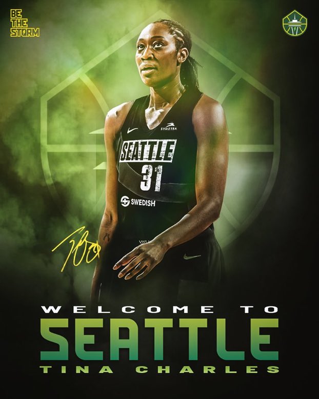 Ahora llega a Seattle Storm, juntando Noelle Quinn a cuatro jugadoras número uno del Draft: 2002 Sue Bird, 2010 Tina Charles, 2015 Jewell Loyd y 2016 Breanna Stewart, con alto componente de UConn, ya que de allí proceden Charles, Bird, Stewart y Gabby Williams, y viendo a Storm cuartas de la WNBA con 12-7, debutando ante Las Vegas Aces con victoria 88-78, saliendo desde el banquillo y anotando cuatro puntos en 16 minutos. Charles, de 33 años, buscará su primer anillo ahora en Storm, el quinto para Sue Bird en su última temporada en la liga. Ahora bien, su carrera es digna del Salón de la Fama, con dos campeonatos NCAA con UConn, número uno del Draft, MVP de la WNBA en 2012, ocho veces all-star y tres medallas de oro en Juegos Olímpicos. Antes de su llegada a Storm, jugó en Connecticut Sun, New York Liberty, Washington Mystics y este curso en Phoenix.