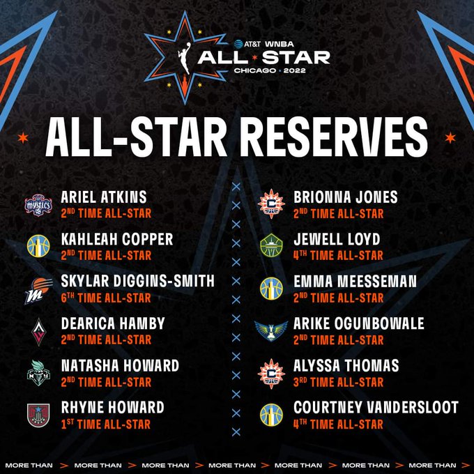 Todas las decisiones deja que once de los doce equipos de la WNBA, tengan al menos una All-Star, viendo como Indiana Fever es la única sin jugadoras, aunque Kelsey Mitchell, con 19 puntos por partido de promedio, era digna all-star en Chicago, siendo una de las grandes ausencias del partido junto a Elena Delle Donne de Mystics.