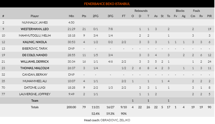 Desde ese momento, el intentó de remontada de Baskonia desisitió, y emergieron jugadores como Nando de Colo y ‘Gigi’ Datome, que se sumaron a la fiesta para lograr una renta holgada para el conjunto otomano. De esta manera, el partido fue al descanso con 28-42 favorable a los pupilos de Obradovic, con un Baskonia que no encontraba clarividencia en ataque.