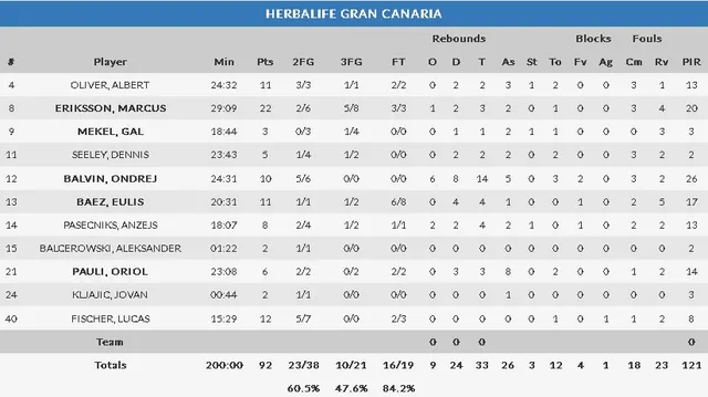Eriksson: Fue sin duda el factor diferencial en el partido, sus triples sirvieron para que su equipo se marchara en el marcador en el segundo cuarto. En el tercero, en el que anotó doce puntos, fue decisivo para acabar con las aspiraciones de un Tofas, con muchos argumentos ofensivos, pero que sucumbió ante la inspiración del escandinavo.