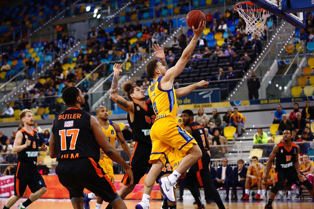 Las defensas mejoraron y los dos equipos estaban perdiendo más balones de lo habitual, sin poder encontrar ritmo ofensivo. Los alemanes estaban muy bien en tiros de dos, con canastas muy sencillas, cerca del aro y el Granca no estaba cómodo, no lograba mover el balón con rapidez ni anotar con regularidad. La conexión de Mekel con Balvin y la anotación individual de Eriksson dieron la primera ventaja significativa al Granca, aunque varios fallos de jugadores del Gran Canaria, provocaron que se ajustara el marcador (41 a 38).