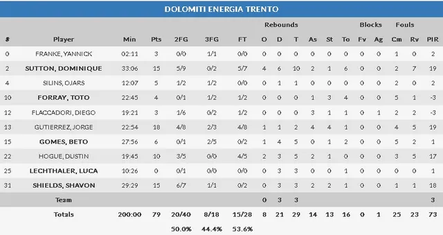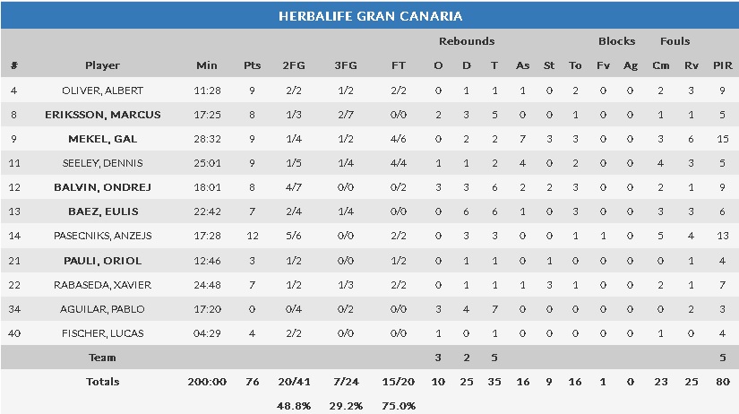 Tiro exterior: Para el Granca fue un lastre, para Trento la pequeña diferencia en un partido igualado. La poca capacidad para romper el partido de Trento y la pelea de los jugadores amarillos hizo que se llegara a un final apretado, con más errores que aciertos. El mayor acierto en el tiro de tres de los italianos fue decisivo. Además, varios triples (Gomes y Gutiérrez) fueron claves para cortar la reacción del Gran Canaria en el último cuarto. Eriksson no estuvo fino y el resto de compañeros tampoco acompañaron, en uno de los peores partidos en ataque del Herbalife esta temporada.