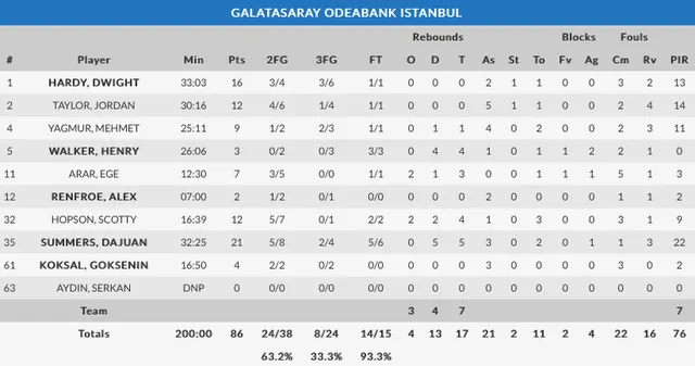 Sin nivel defensivo: Los jugadores que entrenaba, por primera vez esta temporada, Oktay Mahmuti, no pudieron frenar los ataques amarillos en todo el partido. Desde el principio, con una salida espectacular, los jugadores del Granca anotaron con mucha facilidad. Solo en el final del tercer parcial, los otomanos dieron muestra de poder llevarse la victoria. Galatasaray se queda último en la clasificación del Top 16, con tres derrotas y una diferencia negativa de 74 puntos entre los tres partidos. Esto provoca sus opciones de clasificarse para los cuartos de final sean mínimas y puedan centrarse en su liga doméstica, donde están cuanjando una temporada mediocre.