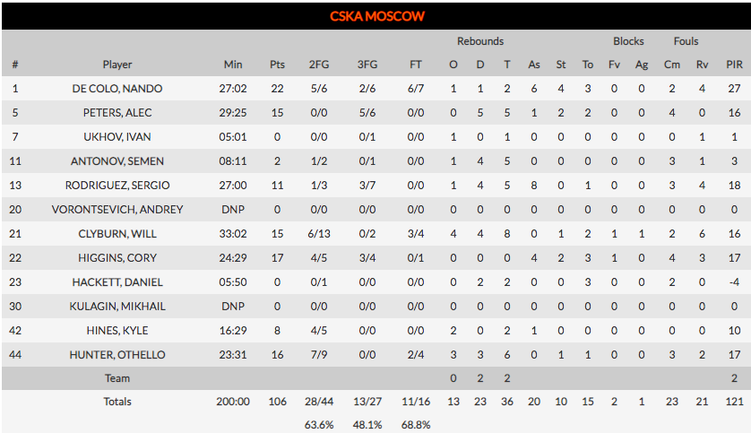 Rebotes: El único aspecto del juego en el que el CSKA fue superior al Herbalife. 36 rebotes de los rusos por 21 del Granca. El poderío físico del conjunto de Itoudis, se demostró sobre todo en la diferencia en la captura de rebotes ofensivos, trece del CSKA, por cuatro del Herbalife. En un día en el que su nivel fue terrenal, el Granca peleó, pero las segundas opciones dieron al rival muchas opciones de anotación. Esto unido al acierto desde el exterior en los minutos finales, terminaron por decantar la balanza a favor del equipo moscovita.