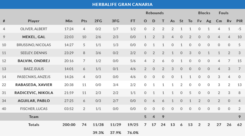 Defensa: El Herbalife consiguió igualar el nivel defensivo del Lokomotiv Kuban, que llegaba al duelo de cuartos con la vitola de ser la mejor defensa de la temporada en Eurocup. Esta intensidad defensiva le permitió al Granca dominar todo el partido y marcar las bases para el segundo partido, que se jugará en el Gran Canaria Arena. Los jugadores del Herbalife han demostrado, cuando les interesa, que son capaces de marcar diferencias desde su defensa, que ha sido muy irregular y poco constante, durante toda la temporada, sobre todo en esta competición.