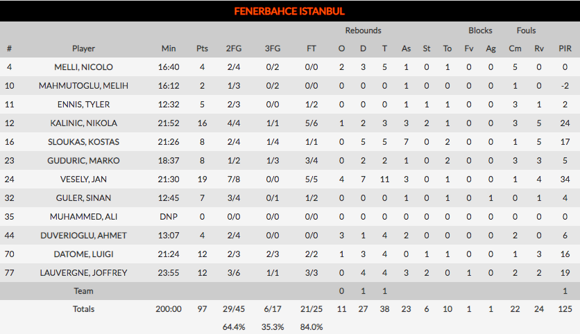 Si con los equipos medios de la ACB lo pasan mal, ante los mejores pívots del continente, las carencias de Pasecniks, Balvin y Fischer son más evidentes todavía. En una primera parte espectacular, Vesely acabó con 15 puntos, 8 rebotes y 26 de valoración. En la segunda parte Obradovic dio más minutos al francés, recién llegado de los Spurs, Lauvergne, que sin contar con la contundencia de Vesely, también se las ingenió para anotar sin parar. Las largas ayudas fuera de la zona y la lentitud para recuperar el terreno perdido, ofreció espacios vacíos que aprovecharon muy bien los turcos. Las bandejas de los exteriores, como Guler o Sloukas, no tenían oposición.