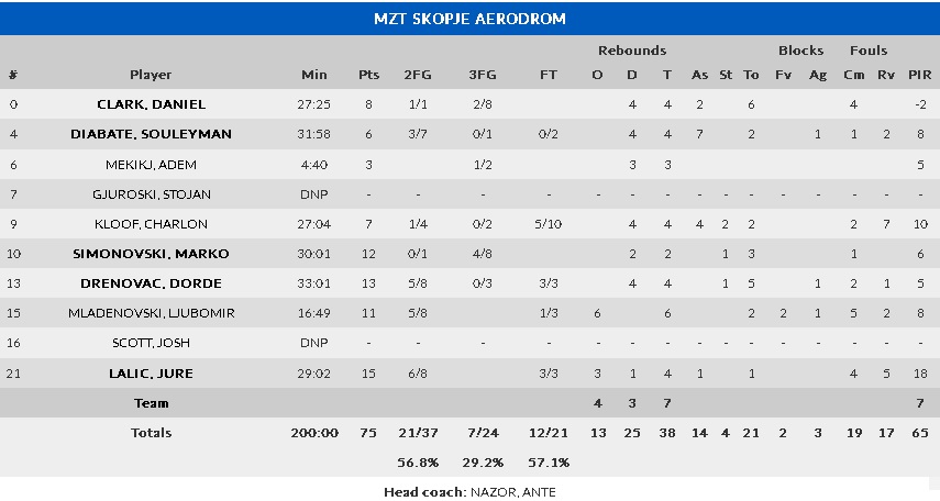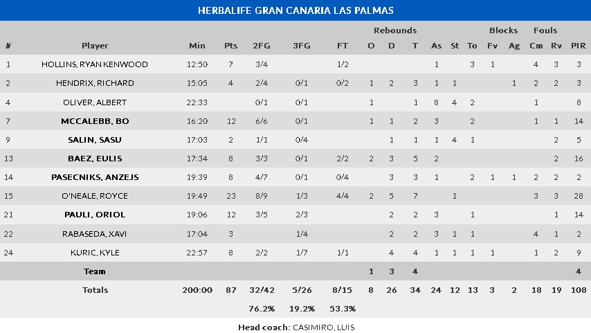 4. Skopje, sin victorias: Los dos equipos demostraban falta de paciencia en el juego colectivo y basaban sus ataques en acciones individuales, abusando ambos del tiro exterior, en el que solo Paulí y Simonovski acabaron con buenos porcentajes. Los mates y la exhuberancia física de Hollins fueron la nota más destacada, en un partido anodino en el que el Skopje intentaba, con más ganas que calidad, abandonar la competición con, al menos una victoria. La relajación defensiva del Gran Canaria permitía, en ciertos ataques, anotar con facilidad a los macedionios, pero aun así, acabaron sucumbiendo.
