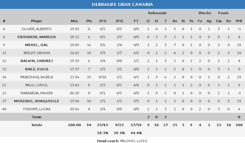 Extra pass: El Granca realizó un juego ofensivo basado en el pase y terminó el partido con veinticinco asistencias en treinta y cuatro tiros de campo anotados. Los amarillos lograron anotar de forma brillante y un juego paciente, pero rápido y un gran movimiento de balón. A falta de mejoras defensivas, los amarillos siguen jugándose todas las cartas con su anotación, algo que le ha fallado en los dos últimos partidos.