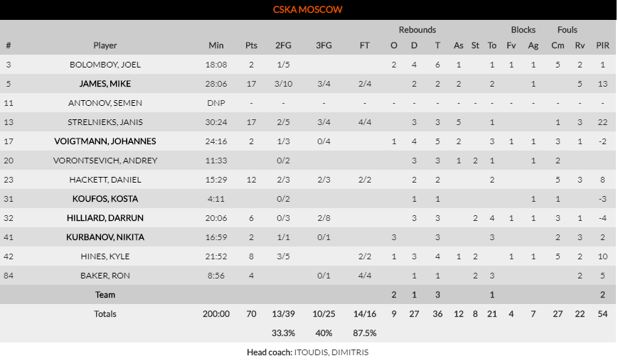 Al conjunto ruso le costó entrar en el partido, pero cuando logó engancharse al ritmo que imponía Baskonia no se soltó de ahí. Mike James y, sobre todo, Janis Strelnieks fueron los grandes líderes de un conjunto ruso que hasta el último suspiro no se desdibujó en ningún momento.