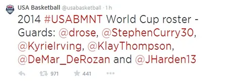 Es evidente que falta la "cream" de la "cream" en el combinado norteamericano, pero hay que reconocer que en este equipo, combinan muy bien el talento individual con el físico. Salvo el lesionado Derrick Rose, que se perdió prácticamente toda la temporada pasada y que poco a poco está recobrando sensaciones, el resto de sus jugadores están en un excelente estado de forma y aseguran hacer un buen papel. Como cañoneros, tenemos al quinto máximo anotador: James Harden (25.4p), al jugador que más triples ha convertido esta temporada y quinto mejor pasador: Stephen Curry (24p y 8.5a), a uno de los jugadores que más han evolucionado en la NBA: DeMar DeRozan (22.7p), a uno de los mejores bases actuales y de futuro en la NBA: Kyrie Irving (20.8p y 6.1a). Para complementar al grupo, tenemos a uno de los jugadores más versátiles y con un excelente tiro exterior: Klay Thompson (18.4p y 41.7%T3).