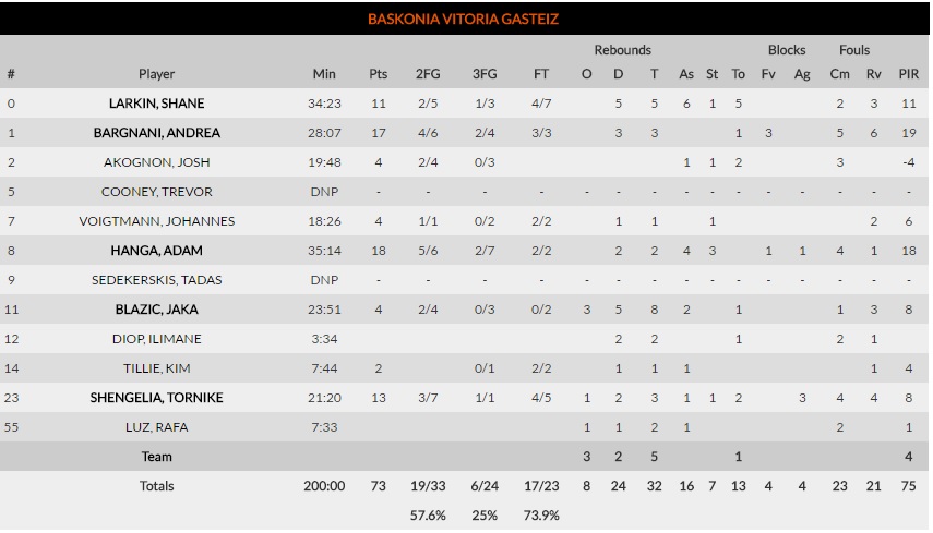 34-40 al descanso con una curiosidad estadística: Baskonia ganaba 49 a 26 en valoración pero solo de 6 en el marcador. Los 11 rebotes ofensivos de Kaunas eran una de las explicaciones, que compensaban su porcentaje horrible tanto en tiros de 2 como de tres.
