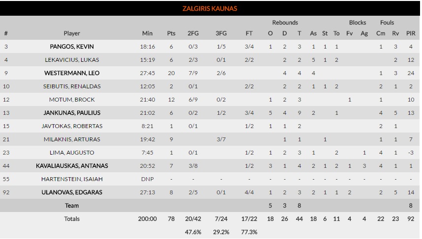 Zalguiris se mantenía con el ya mencionado rebote ofensivo y con los 9 puntos de Westermann, el fichaje que nunca jugó en Barcelona, y que parece dispuesto a hacerse un nombre en Euroliga esta temporada. También Jankunas aportaba 12 de valoración.