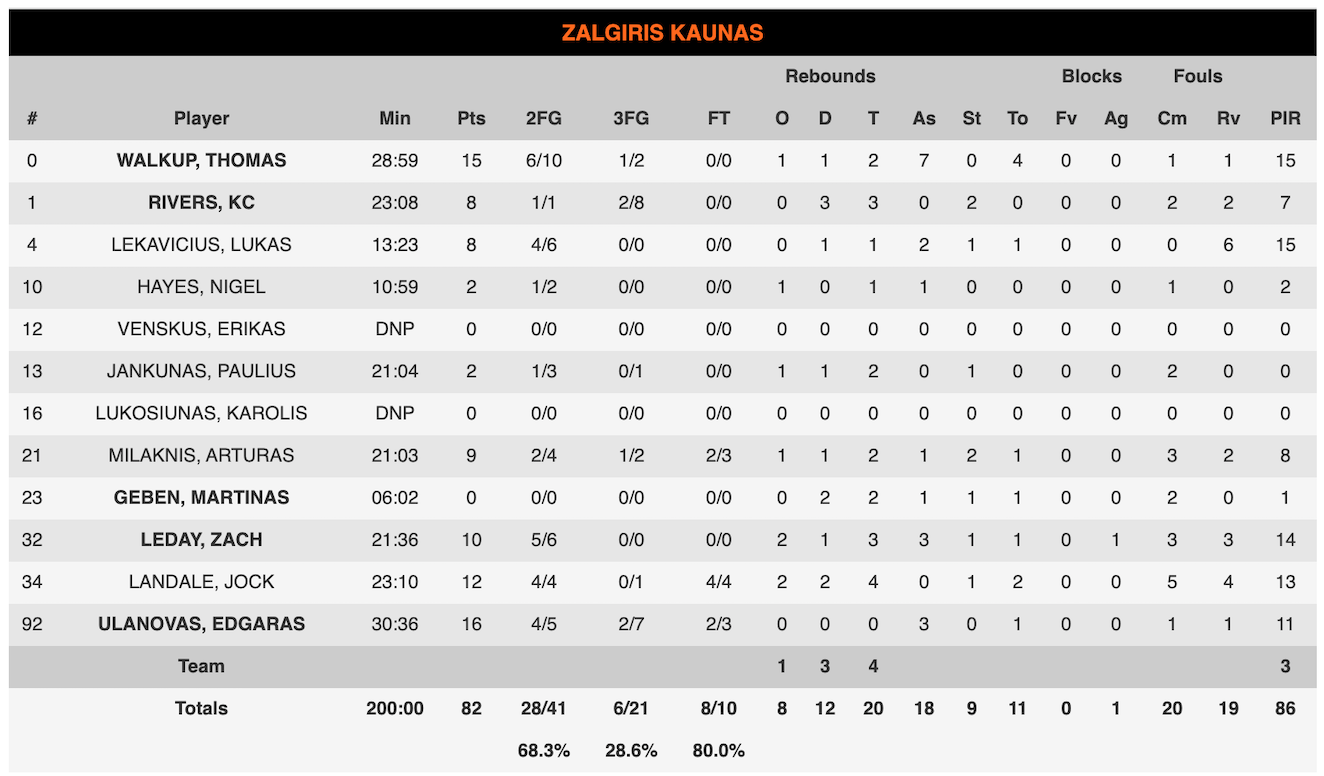 -Zalguiris corto de efectivos: Recordando al Zalguiris de la temporada pasada y sobretodo de hace dos se echa en falta una mayor rotación de calidad. Cuando no están en pista ciertos jugadores el juego se descontrola y su nivel de calidad y físico mengua. Hoy se ha visto claramente como la expulsión de Landale ha supuesto un bajón físico del equipo, al no tener un sustituto de garantías.