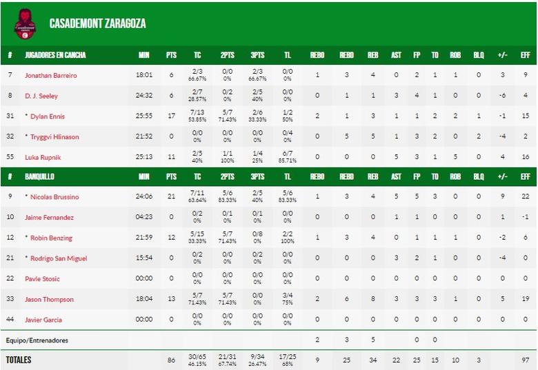 Luka Rupnik comienza a demostrar el acierto de su fichaje. No es la primera vez que la desgracia de las lesiones provoca la entrada en el equipo de un jugador que se convierte en muy importante. En el caso del base esloveno ya no es solo por su calidad, si no por la necesidad que tenía el equipo de Diego Ocampo de contar con un segundo director de juego puro con experiencia, ya que Rodrigo San Miguel ha estado muy solo en esa labor en este inicio de temporada. En su primer partido contando con minutos Rupnik ya fue responsable de un juego más organizado, dirigiendo las primeras ventajas en la primera parte de Casademont. Salió de cara tras el descanso y además jugó los minutos decisivos siendo muy importante para que los maños tuvieran opciones con 5 puntos seguidos que iniciaron la remontada, además de forzar la falta y sumar los tres libres que pusieron el 84 a 83 a falta de 12 segundos y encontrar a Seeley para el triple ganador. Acabó con 11 puntos, 5 asistencias, 5 robos y 16 de valoración.