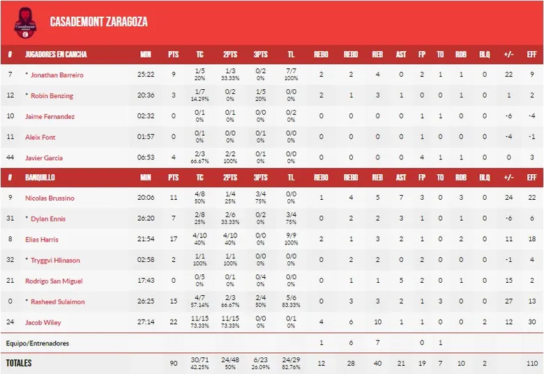 Nymburk domina el rebote pero no consigue aprovechar esa ventaja. Los checos dominaron los rechaces durante todo el partido, acabando con 50 a su favor por 40 de los zaragozanos, pero no consiguieron transformar ese dominio en puntos a su favor. Casedemont Zaragoza sumó 16 puntos tras rebote ofensivo, mientras que los checos solo 15, a pesar de haber reboteado en la canasta contraria hasta 18 veces. Además solo consiguieron ir 15 veces a la línea de tiros libres por los 29 de los del Oveja Hernández, que también consiguieron más puntos en la pintura con 44 por 38.