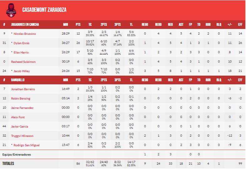 El mejor Ennis, en el mejor momento. La actuación del jamaicano fue decisiva a lo largo del partido y en los momentos claves del mismo. Ennis lideró a Casademont Zaragoza con una actuación soberbia durante casi los 40 minutos, ya que jugó 36:27. Fue el mejor en la primera parte, sumó 10 puntos en el tercer cuarto para ser el protagonista junto a Wiley en el período en el que los maños se pusieron por delante y consiguieron las primeras ventajas significativas y apareció cuando los rusos se acercaban en el período decisivo. Tras conseguir la mayor ventaja con un triple de San Miguel (60-71), el Nizhny firmó un 8 a 0 con el público encendiéndose y con el equipo ruso lanzado, pero entonces Ennis sumó un triple, cogió el rebote defensivo y asistió para el 68 a 76 a falta de 5 minutos. En los minutos finales el cansancio pudo con él y fue Brussino el que cerró la victoria con sus libres pero Ennis ya había hecho el trabajo con 26 puntos, 5 rebotes, 4 asistencias y 26 de valoración.