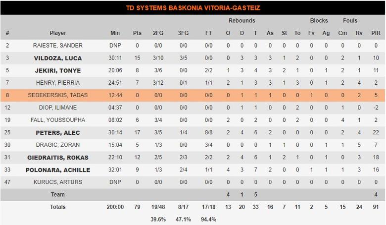 EL TALENTO INDIVIDUAL DE VILDOZA PARECIÓ ANIMAR A BASKONIA POR MOMENTOS
