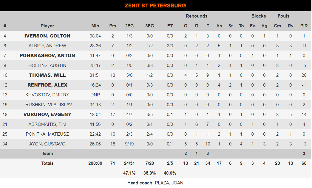 Reencuentro agridulce para Ayón: El mexicano Gustavo Ayón volvía a reencontrarse con el conjunto blanco después de cinco años en la plantilla merengue. Empezó el partido de hoy con buen pie, demostrando que aún le queda mucha calidad en sus manos y en sus movimientos de pies. Sin embargo, las enormes defensas de su excompañero Tavares fueron un suplicio para el interior del Zenit. Finalmente cerraría su participación con un doble-doble de 18 puntos y 10 rebotes.