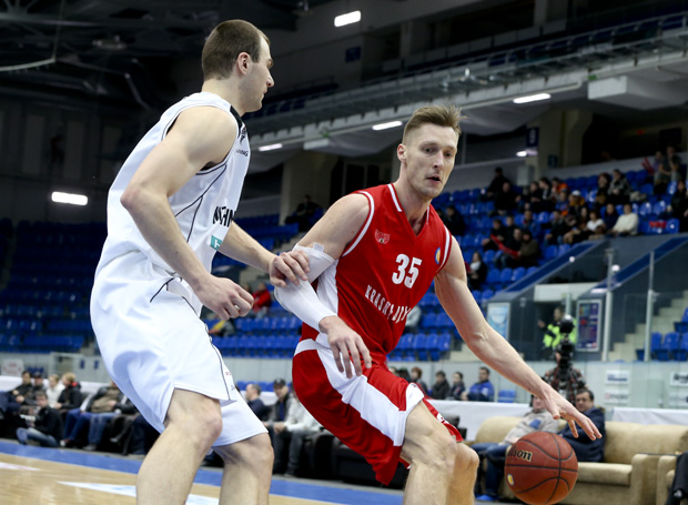 En el último segundo se decidió el último partido de la jornada, que enfrento al BC Kalev y al Krasny Oktyabr. Los estonios vencieron por 82 a 80 gracias a dos tiros libres que anotó Pecherov con un segundo en el electrónico. Ambos equipos se encuentran en plena lucha por los playoff, sobre todo el Oktyabr, que no encuentra regularidad esta temporada y depende en exceso del nivel de Randy Culpepper, desaparecido en las últimas jornadas. El partido comenzaba con el Oktyabr arrollando, con parcial de 13 a 0 y con el Kalev sin anotar en los cuatro primeros minutos del partido. Pecherov aparecía para los suyos, con 9 de los 12 puntos del equipo en el cuarto, pero el acierto exterior de los rusos en el primer cuarto (6/8 en triples) cerraba con 28 a 12 el período. Apareció el verdadero Kalev, subiendo el ritmo de juego y buscando mejores opciones en ataque, de la mano de Scott Machado (21 puntos y 9 asistencias), y recortaban la ventaja hasta los 10 puntos. Seguiría el buen momento del Kalev, con un parcial de 9-0 de inicio en el tercer cuarto, que los ponía a un punto del Oktyabr. Con Culpepper desaparecido (6 puntos con 3/11 en tiros), Lamont Hamilton, el ex de Laboral Kutxa y Bilbao Basket, tomaba el mando en ataque, anotando 26 puntos. El Oktyabr podía estar satisfecho de cerrar el cuarto con dos puntos de ventaja, pues no eran capaces de parar el vendaval ofensivo del Kalev. El último cuarto mantuvo la igualdad, decidiéndose el partido en los últimos segundos. Con 80 a 80 en el marcador y posesión para el BC Kalev, Scott Machado logró quedar emparejado con Lamont Hamilton. Parecía un 1vs1 claro entre Machado y el pívot del Oktyabr, pero vio la ventaja en el poste de Pecherov con Willie Deane y mandó el balón dentro, forzando a Deane a realizar una falta clara sobre el pívot, que anotaría los dos tiros libres y cerraba la victoria en 82 a 80, colocando al Kalev en plena lucha por los puestos de playoff.