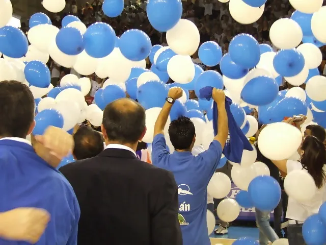 El bocinazo final anunciaba el ascenso a la ACB del equipo de Paco Olmos y el pabellón se convertía en una auténtica fiesta.