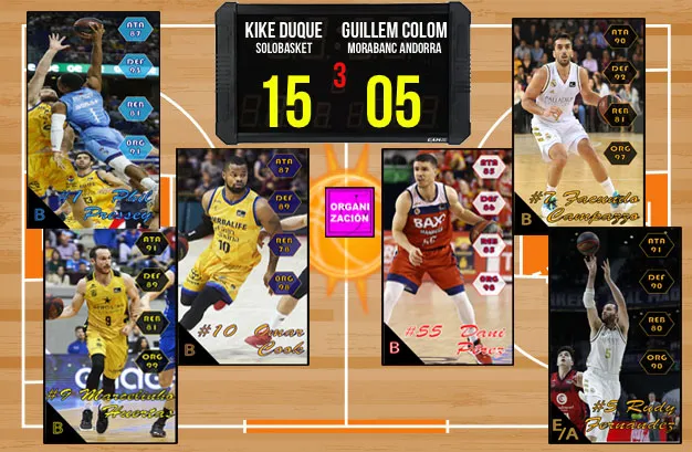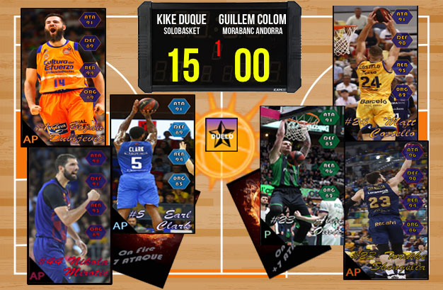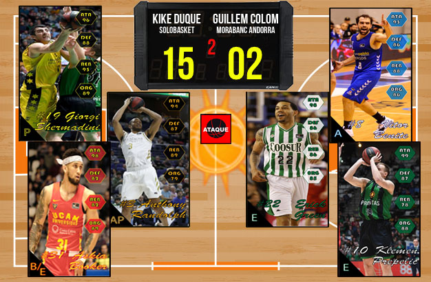 Comenzamos el partido de la mejor manera posible con un duelo de estrellas. Guille Colom sacará de inicio a la estrella baskonista Tornike Shengelia (366 puntos) y dos torres como Alen Omic (354) y Matt Costello (358); como complemento, Guillem utiliza la carta de Apoyo ON FIRE posicionándose en el primer cuarto con 1099 puntos. En el otro lado, Kike Duque dorma de inicio con tres interiores como Bojan Dulbjevic (363), Nikola Mirotic (371) y Earl Clark (359); utilizando también la carta de Apoyo ON FIRE (1114 puntos en total). El primer cuarto es para Kike Duque por 15 puntos (1114 – 1099 = 15) sumando la primera renta del aprtido.