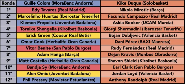 El nuevo rey se decidirá bajo aros con una batalla por el rebote. Guillem Colom sale con todo a por la victoria con Edy Tavares (96 en Rebote), Adam Hanga (89), Bandja Sy (90) y la carta de Apoyo IMÁN; para un total de 296. Por su parte, Kike Duque tratará de mantener el mando del partido con Dejan Kravic (94), Shavon Shield (89) y Jordan Loyd (78) sumando 261 puntos. Un cuarto reboteador que se decanta claramente por el lado andorra con una importante diferencia de 35 puntos (261 – 296 = 35) que no solo le sirve para ganar el cuarto si no también para remontar el partido con un aplastante marcador de 40 a 15 para Guillem Colom.