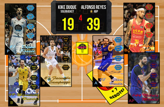 Continuamos con nuestras batallas de cartas y pasamos a un nuevo nivel teniendo como contrincante a toda una leyenda de la Liga Endesa y actual presidente de la Asociación de Baloncestitas Profesionales: Alfonso Reyes. El ex jugador de Breogan, Real Madrid, París Basket Racing, Estudiantes y Unicaja Málaga se verá las caras ante Kike Duque en esta nueva entrega. Tras la victoria conseguida por Ondrej Balvin en el último duelo, el marcador global esta en 5 victorias para el bando Solobasket (Javi Vega (San Pablo Burgos), Edu Durán (UCAM Murcia), Beqa Burjanadze (Herbalife Gran Canaria), Álvaro Muñoz(Monbus Obradoiro) y Tyson Pérez (MoraBanc Andorra) y tres victorias para el lado de los jugadores de la Liga Endesa (Guillem Colom (MoraBanc Andorra), Dani Pérez (BAXI Manresa) y Ondrej Balvin (RetaBet Bilbao Basket)).