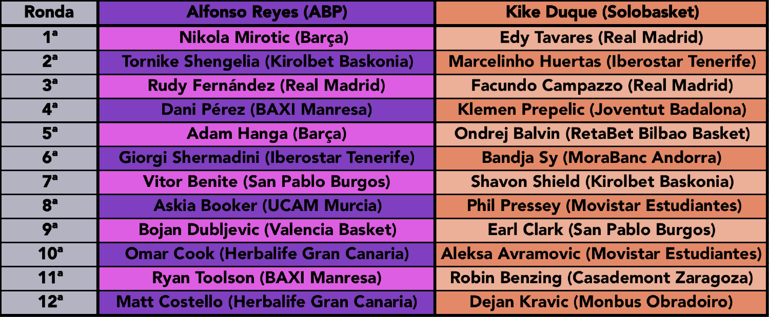 Mientras que el equipo de Kike Duque (Solobasket) estará compuesto por: