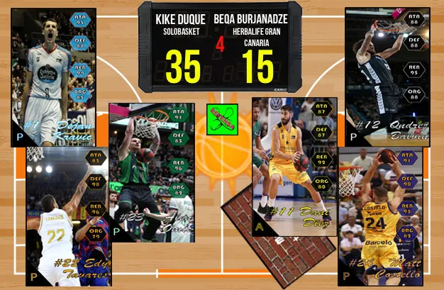 Los ataques ganan partidos pero desde siempre son las defensas las que ganan los campeonatos. El partido se decidirá atrás y Beqa sabe bien con quien jugarse el partido: Dani Díez (87), Matt Costello (90) y Ondrej Balvin (88) con la carta de Apoyo MURALLA para cerrar aún más su aro. En el otro banquillo, Kike forma con tres torres como Edy Tavares (98), Alen Omic (85) y Dejan Kravic (88). El cuarto es para Beqa por una importante renta de 15 puntos (271 – 286 = 15), pero no consigue remontar el partido quedandose a 20 puntos de los 35 de Kike Duque (35 – 15).