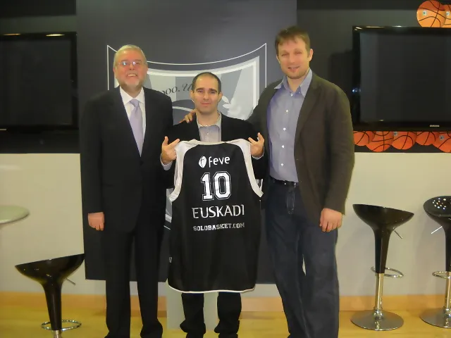 Pocos días más tarde fue Bizkaia Bilbao Basket el que se unió al homenaje a Solobasket.com en su décimo aniversario. Nuestro redactor, Igor Minteguia, tuvo el honor de recibir una camiseta conmemorativa del club vasco, que lucía un número 10 con el nombre de Solobasket.com en la espalda. Hicieron entrega de la camiseta Pedja Savovic (Responsable del Área de Marketing del club) y Jesús Sanz (Vicepresidente de la Fundación Bilbao Basket). Se da la circunstancia que Bilbao Basket también cumple en la presente temporada su décimo aniversario. Desde Solobasket.com queremos felicitar al club presidido por Xabier Jon Davalillo por una década mágica, en la que Bilbao Basket ha pasado de ser un equipo de LEB2 recién nacido a asentarse entre la elite del baloncesto ACB y continental.