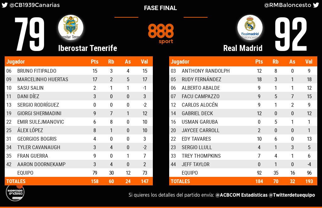 Los años no parecen pasarle factura. Rudy Fernández fue el mejor jugador del partido, logrando una destacada serie de tiro (5/9 en triples), anotando en los momentos clave para romper el choque. Al mallorquín se le da muy bien el Pabellón Santiago Martín, lugar en el que ha realizado actuaciones muy destacadas en sus últimas visitas. En el día de hoy, todos sus tiros han sido practicamente indefendibles, ejecutándolos muy lejos del aro (entorno a los ocho metros), poniendo a la defensa del Iberostar en serios apuros.