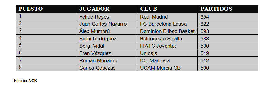 Tras haber alcanzado la notable cifra de 500 encuentros en la competición española, Cabezas entra en el selecto grupo de jugadores en activo que han llegado a ella, además de ocupar la 29ª posición en el ranking histórico de baloncestistas con más partidos, una clasificación dominada por Rafa Jofresa con 756 partidos.