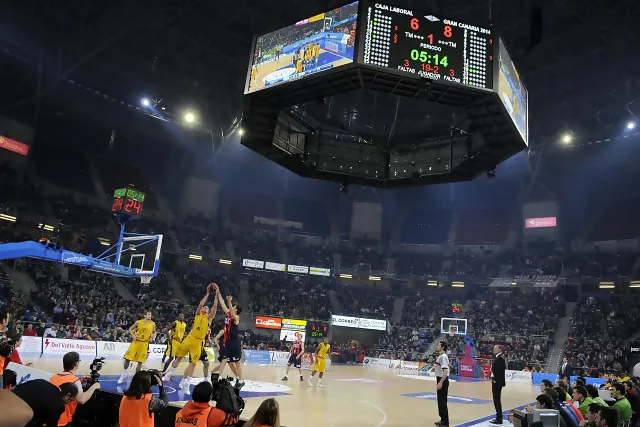 Todo comenzaba con espectáculo. Presentación NBA, luces, música, fuegos de artificio y sobresaliendo por encima de todo el descomunal videomarcador que cuelga de lo más alto del recinto de Zurbano. Todo delante de un público que había agotado las entradas, para los cuales el regreso al Buesa ha sido la mejor noticia de una temporada desilusionante. Un emotivo mensaje de Manel Comas, con un vídeo conmemorativo puso el punto sentimental a una mañana de muchas emociones y comentarios en la grada.