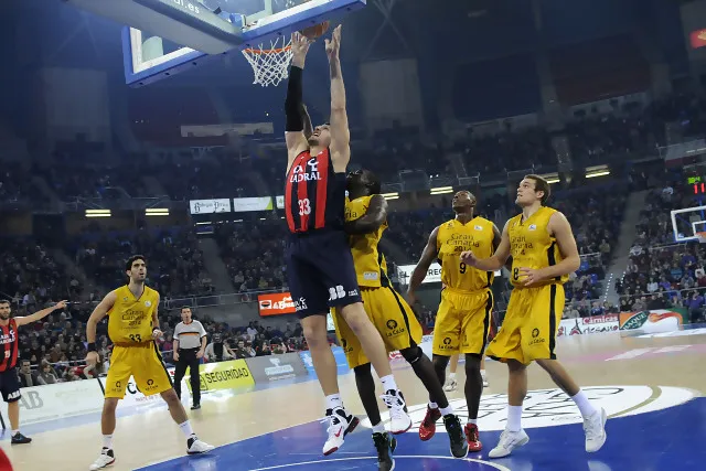 Los amarillos mostraron un nivel muy alto de acierto en situaciones exteriores –Haynes, Bramos y Palacios– y ponían en muchos apuros los ataques del equipo de Dusko Ivanovic. La entrada de Mirza Teletovic en pista, cambió el signo del encuentro. El bosnio volteó el marcador y dio las primeras ventajas a los locales anotando 13 puntos en escasos 12 minutos, incluido un triple sobre la bocina que daba una ventaja de 6 puntos al Caja Laboral al descanso.