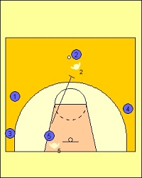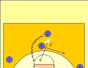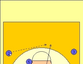 Esta otra jugada también fue utilizada en varias ocasiones en el primer partido por el Regal Barça. El base se iba botando a un lado mientras que Navarro bloqueba al defensor de Andersen en el poste bajo para que éste saliera a recibir de tres (gráfico 4). Si salía con ventaja el australiano no se pensabada dos veces lanzar de tres pero si el defensor le paraba tenía un aclarado para jugarse un 1×1 (gráfico 6) que casi siempre acababa en canasta gracias a la multitud de recursos que tiene para jugar de fuera a dentro. Además si el base no veía claro el pase a Andersen, Navarro salía disparado hacia el otro lado con la ayuda del bloqueo del otro pívot para recibir después de una inversión de balón (gráfico 5). Lo cierto es que la polivalencia de Andersen le permite ser peligroso en cualquier punto de la pista.