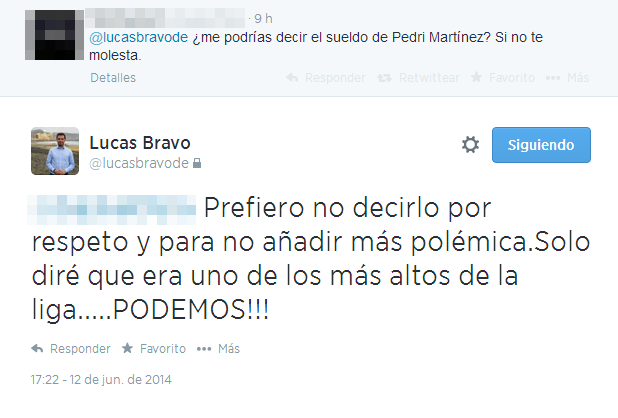 No obstante, hubo uno de los tweets que suscitó un interés especial, un tweet que podría delatar el entramado de la no continuidad de Pedro Martínez y las cuestiones ideológicas de este último, por el cual Bravo de Laguna tuvo que aclarar algunas cuestiones de nuevo ante varias acusaciones: